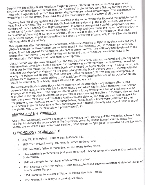 - Git on Board: Martha and the Vandellas/Chronology of Malcom X