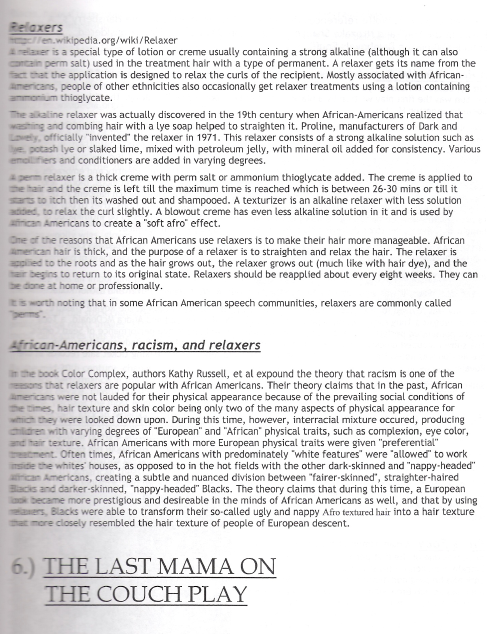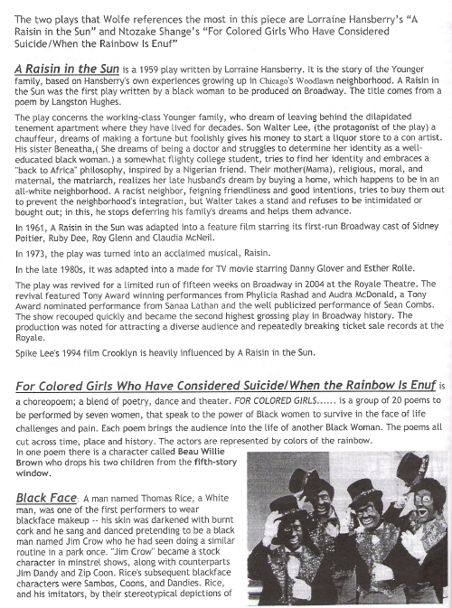 The last pages of the dramaturgical packet were taken from George Wolfe's Biography.
